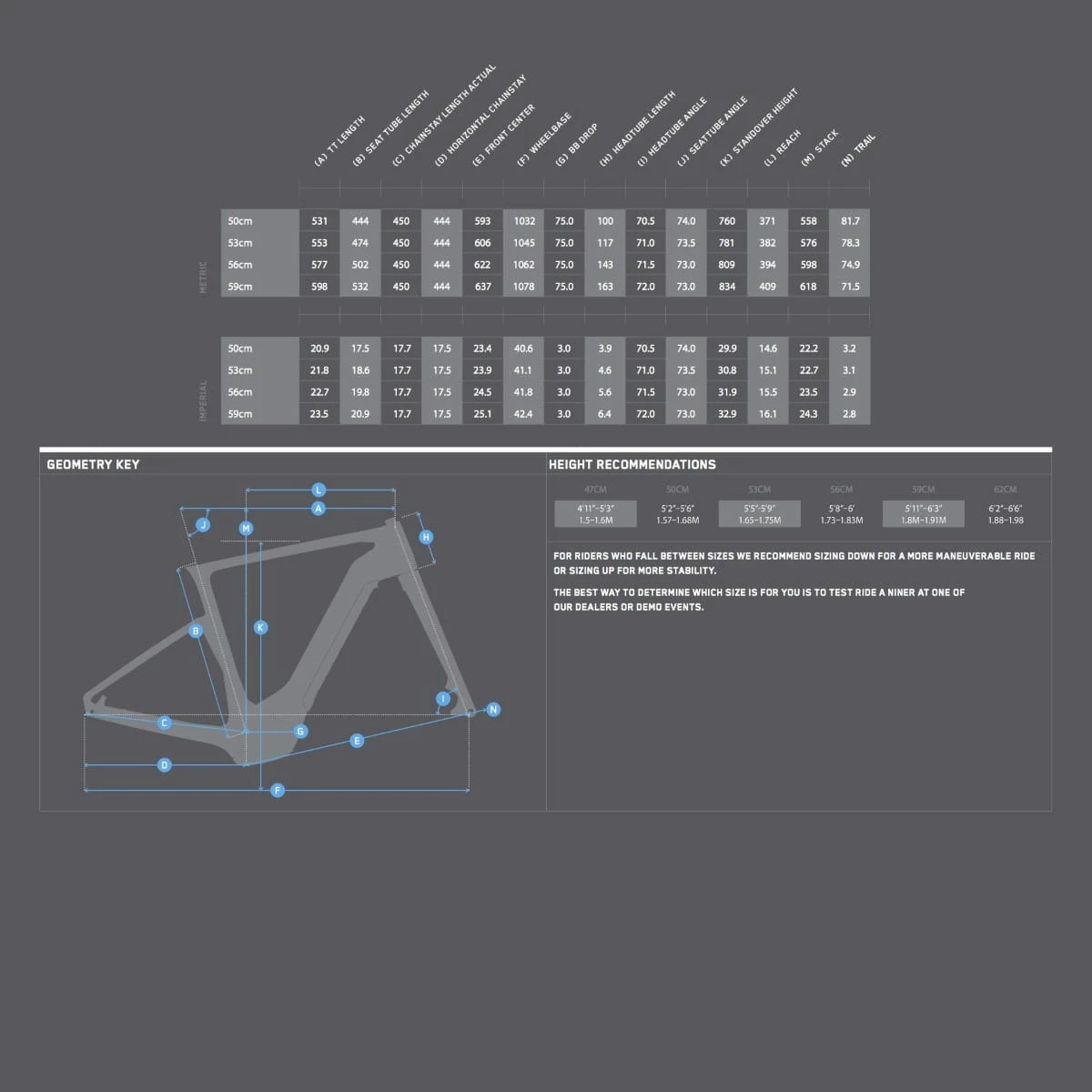 Les caractéristiques de conception subtiles assurent une incroyable polyvalence. Le montage de frein à disque post-mount facilite le passage à un guidon plat avec des freins de VTT. De même, notre inclusion délibérée de l’espacement des moyeux Boost et des manivelles permet au cycliste d’être interchangeable avec des pièces de transmission de VTT. Et la toute nouvelle fourche carbone RLT e9 RDO a la même longueur qu’une fourche suspendue FOX AX. Il y a même un guide pour une tige de selle abaissable.